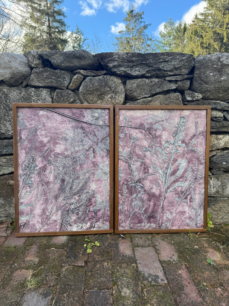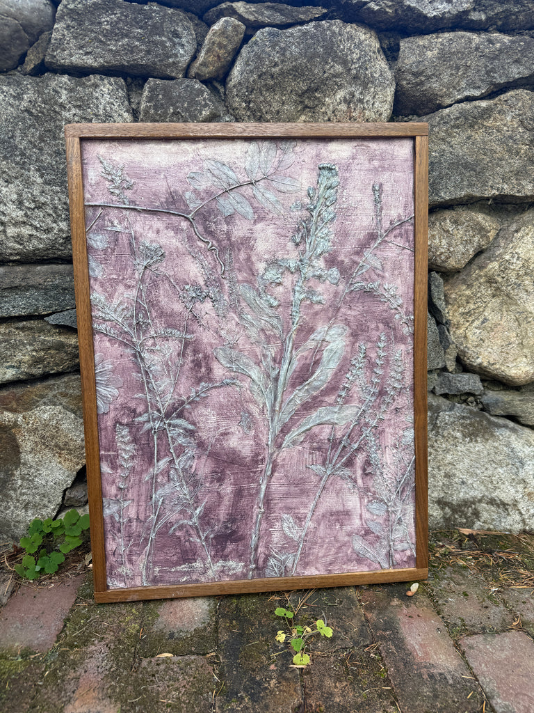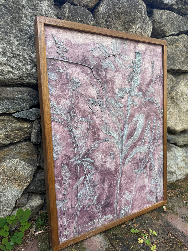 Resin flower fossils. Hand painted. Framed in walnut.